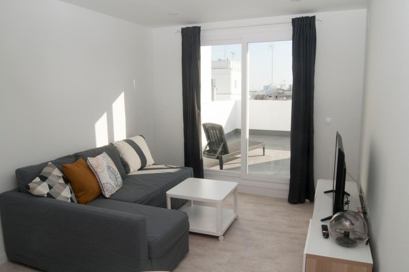 Apartamento de 1 dormitorio. This air-conditioned apartment comprises 1 living room, 1 separate bedroom and 1 bathroom with a shower. The well-fitted kitchen features a stovetop, a refrigerator, a microwave and a toaster. Featuring a terrace with city views, this apartment also provides a washing machine and a flat-screen TV. The unit offers 2 beds.