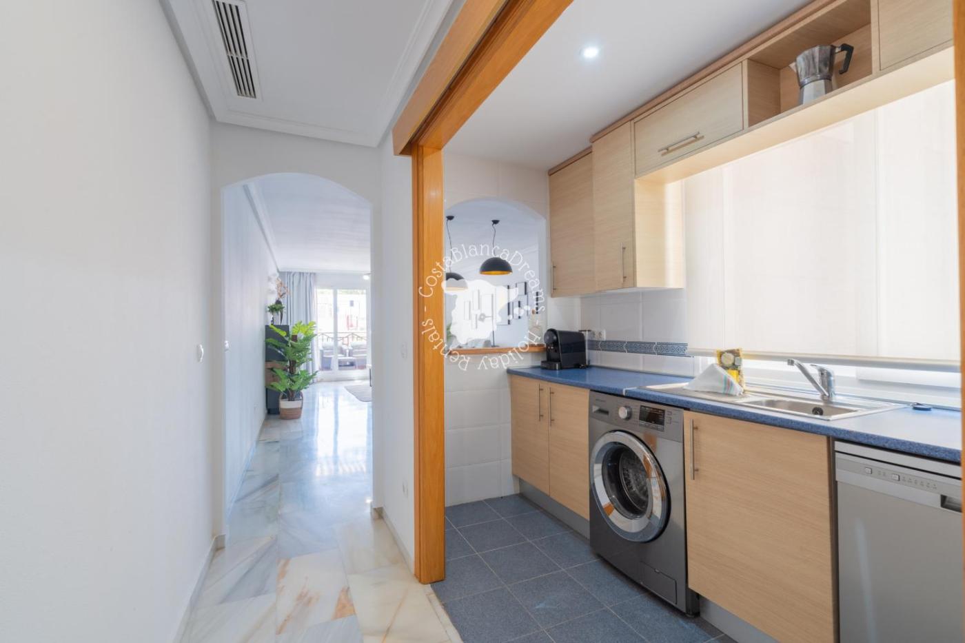 El apartamento tiene 3 dormitorios, TV con canales vÃa satélite, una cocina equipada con nevera y lavavajillas, lavadora y 2 baños con ducha. Hay toallas y ropa de cama en el apartamento.