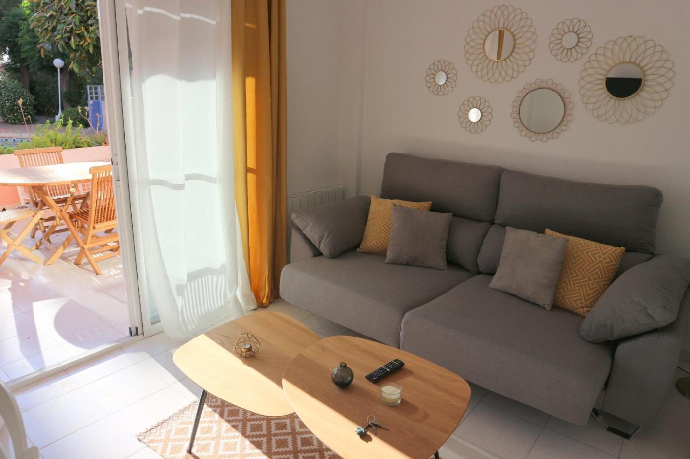 Apartamento - Planta baja. This apartment is comprised of 1 living room, 2 separate bedrooms and 1 bathroom with a shower and free toiletries. Guests can make meals in the kitchen that comes with a refrigerator, kitchenware, an oven and a microwave. The air-conditioned apartment offers a flat-screen TV with streaming services, a washing machine, a coffee machine, a dining area as well as garden views. The unit offers 3 beds.