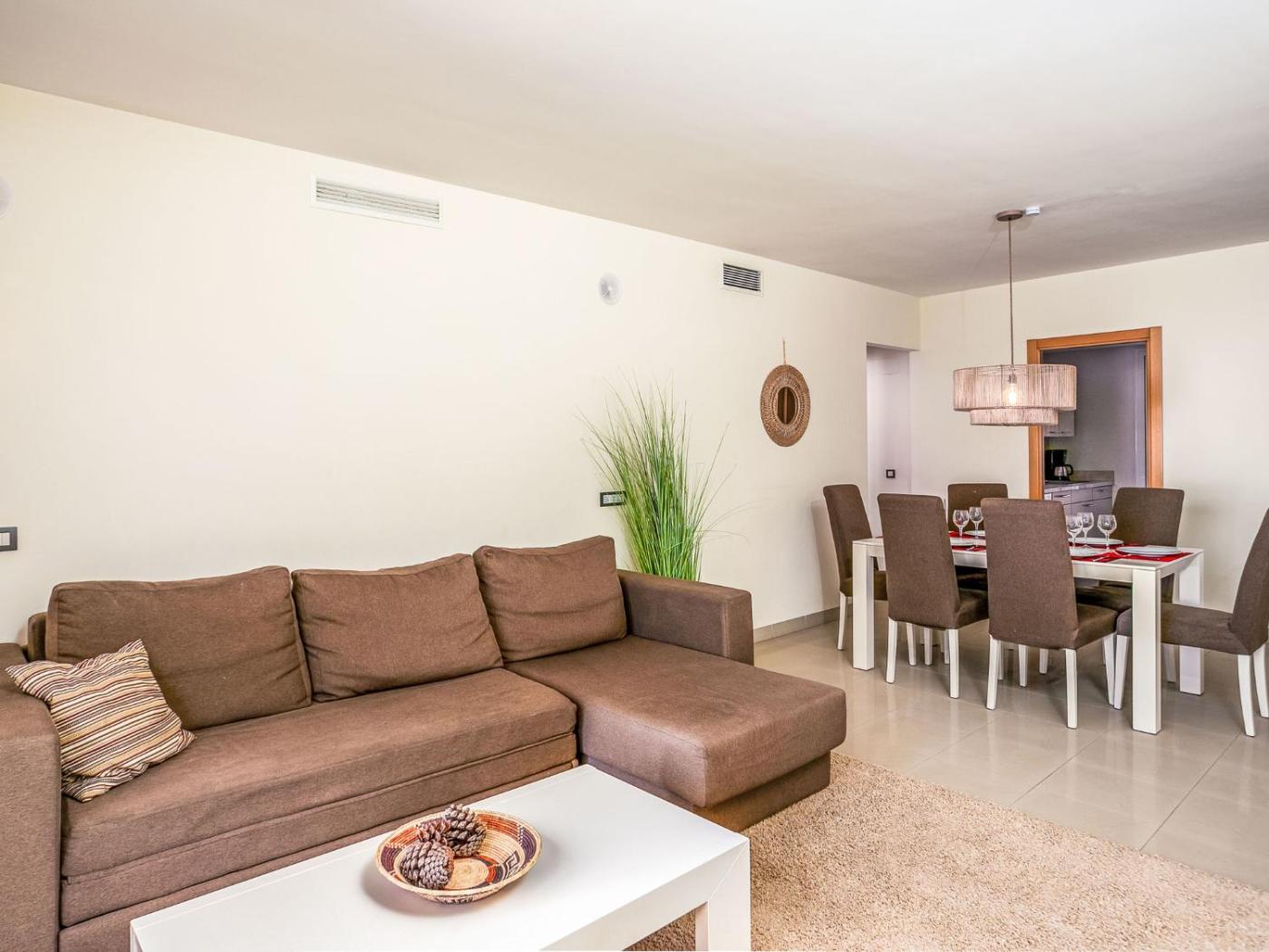 Apartamento. This spacious apartment is comprised of 2 bedrooms, kitchen, a terrace and 2 bathrooms with a bath. The well-equipped kitchen features a stovetop, a refrigerator, a dishwasher and kitchenware. The air-conditioned apartment offers a TV, a washing machine, a coffee machine, a dining area as well as garden views. The unit offers 3 beds.