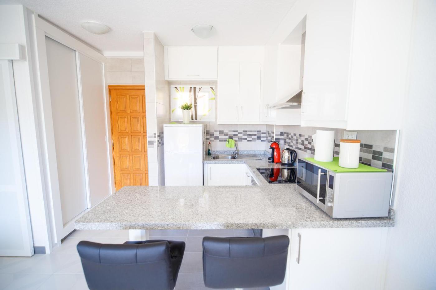 Apartamento. This apartment consists of 1 living room, 1 separate bedroom and 1 bathroom with a shower and a hairdryer. The fully equipped kitchen features a refrigerator, kitchenware, an oven and a microwave. Featuring a balcony with sea views, this apartment also provides a washing machine and a TV with satellite channels. The unit offers 2 beds.