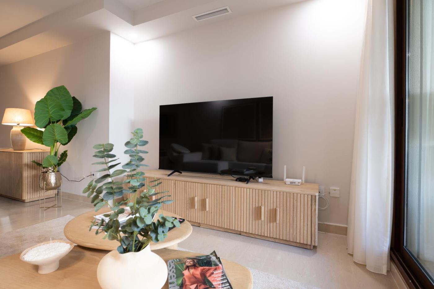 Apartamento Deluxe de 2 dormitorios. The pool with a view and hot tub are the special features of this apartment. This spacious apartment includes 1 living room, 2 separate bedrooms and 2 bathrooms with a bath and free toiletries. Guests can make meals in the kitchen that has a refrigerator, a dishwasher, kitchenware and an oven. The air-conditioned apartment offers a flat-screen TV, a washing machine, a tea and coffee maker, a dining area as well as garden views. The unit has 5 beds.