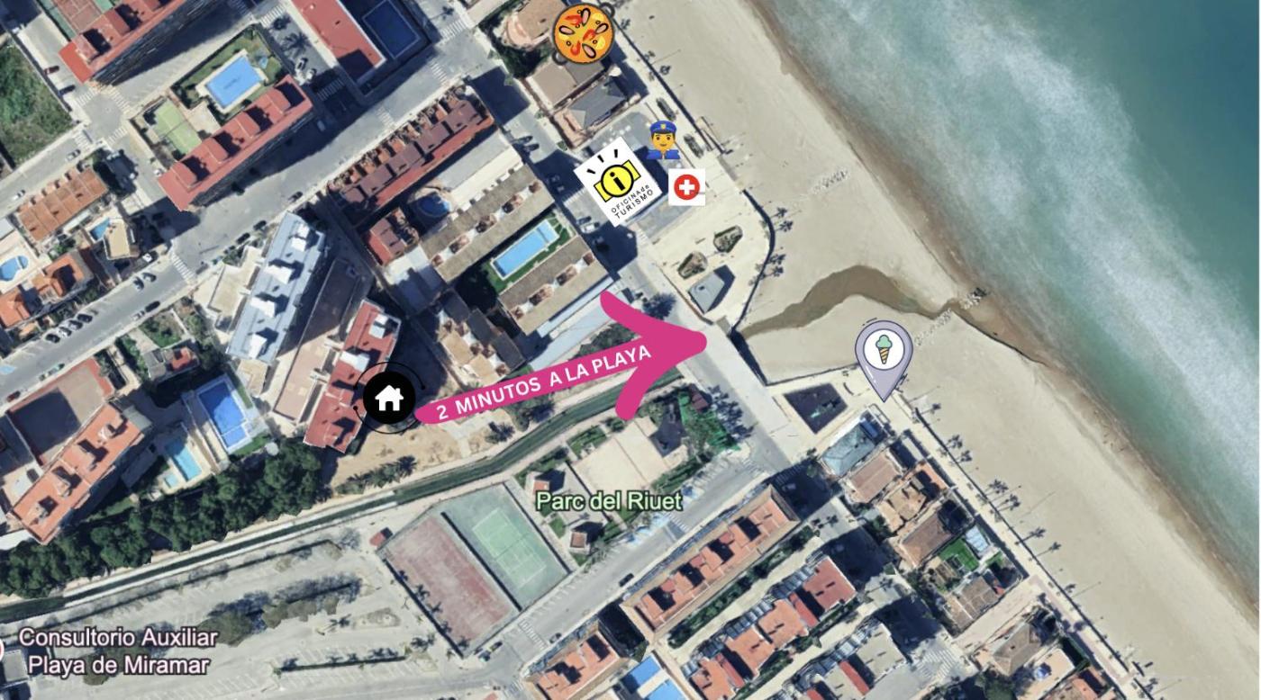 Muy cerca del mar, dos habitaciones se encuentra en Miramar, a solo 1 min a pie de Platja de Bellreguard, y ofrece alojamiento frente a la playa con piscina de temporada al aire libre, jardÃn, terraza y wifi gratis. Este apartamento también tiene piscina privada.