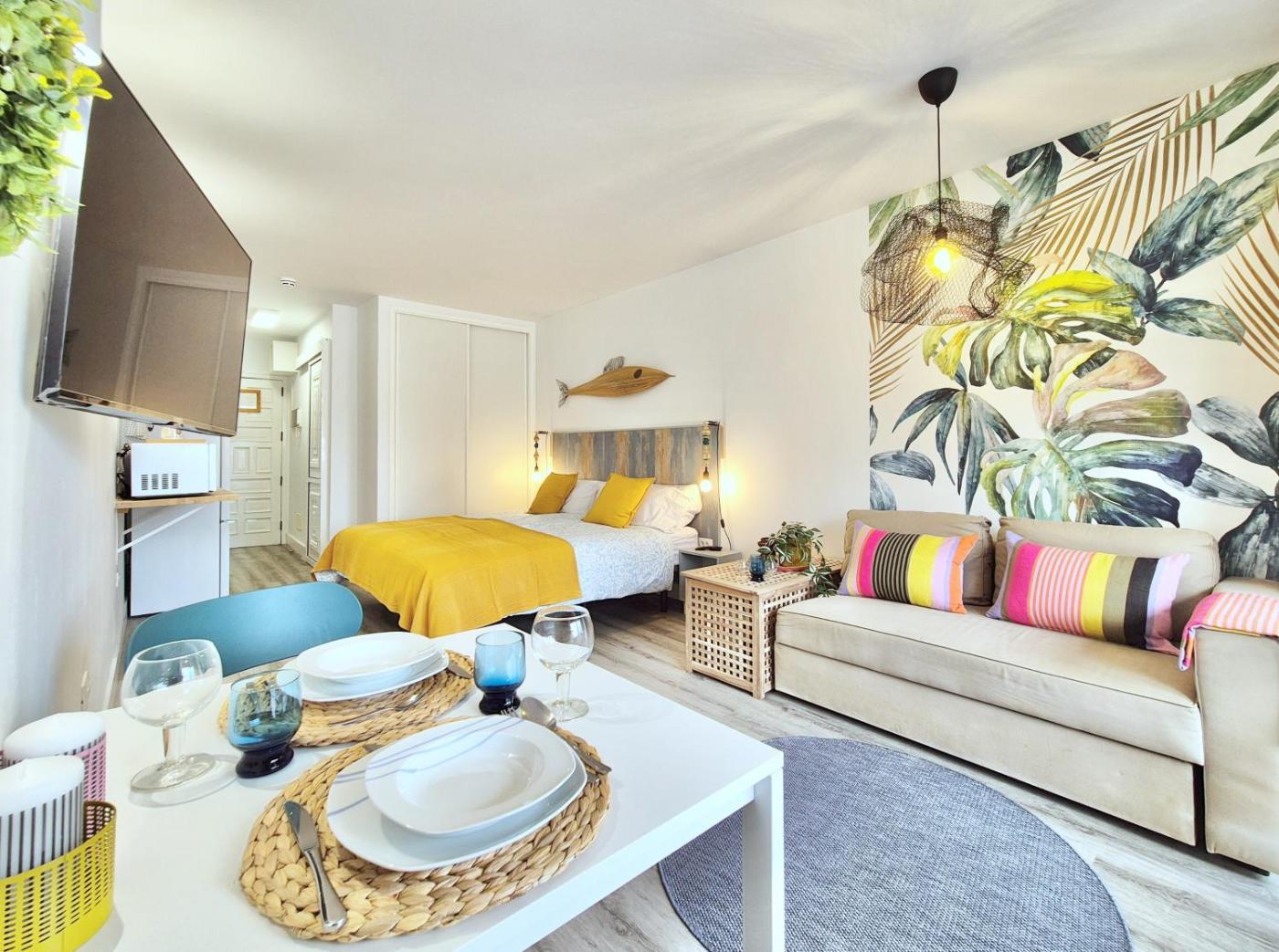Estudio Deluxe. In the kitchen, guests will find a stovetop, a refrigerator, kitchenware and a microwave. This air-conditioned studio is comprised of a flat-screen TV with streaming services, a private bathroom as well as a balcony. The unit has 2 beds.