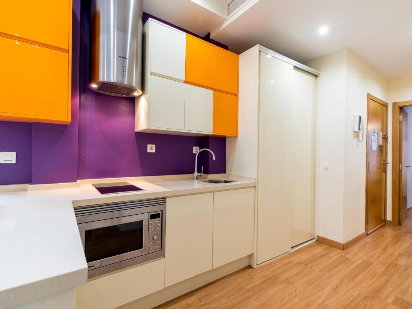 Apartamento de 1 dormitorio. Boasting a private entrance, this air-conditioned apartment includes 1 living room, 1 separate bedroom and 1 bathroom with a shower and a bidet. The well-equipped kitchen has a stovetop, a refrigerator, a dishwasher and kitchenware. Featuring a patio, this apartment also offers a washing machine, a coffee machine and a TV. The unit has 1 bed.