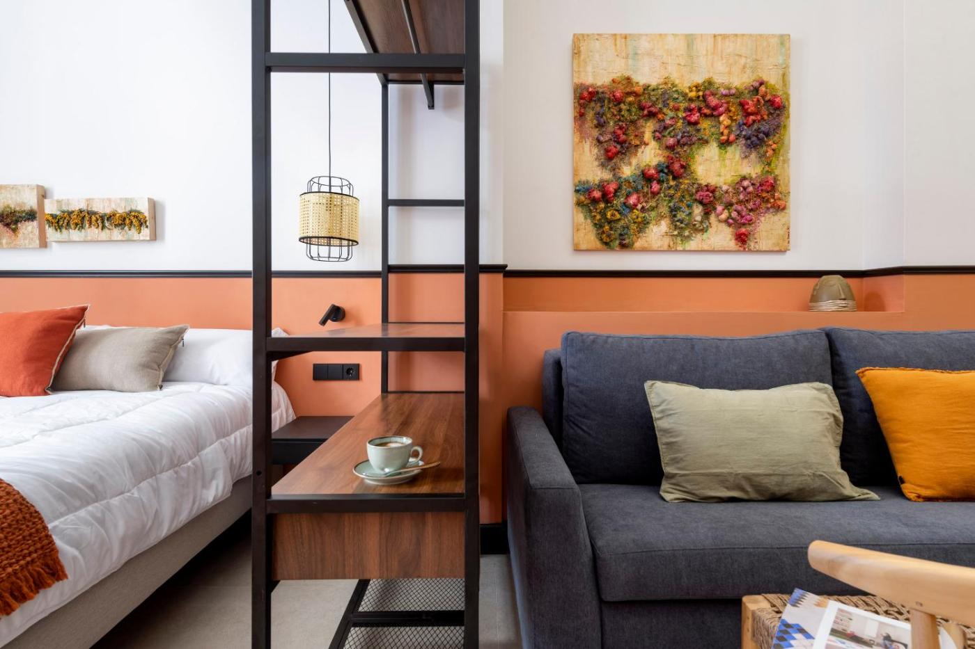 Estudio. The studio has a private bathroom, air conditioning, a washing machine, as well as a seating area with a flat-screen TV. In the well-fitted kitchen, guests will find a stovetop, a refrigerator, kitchenware and a toaster. The studio offers a coffee machine, a dining area, a wardrobe, a sofa, as well as a TV. The unit has 2 beds.