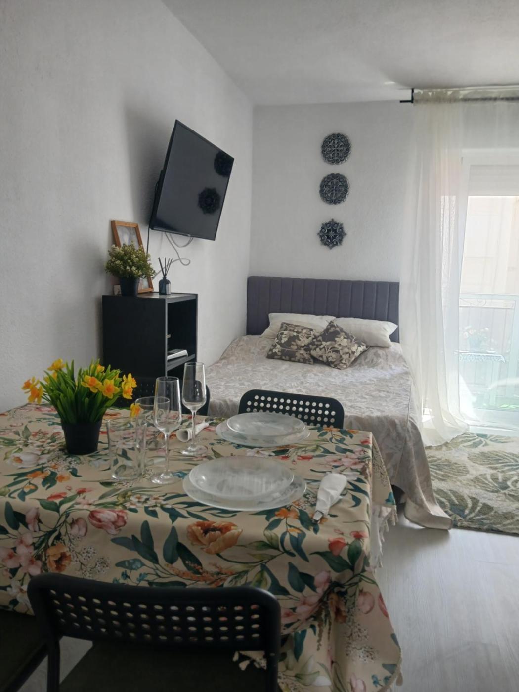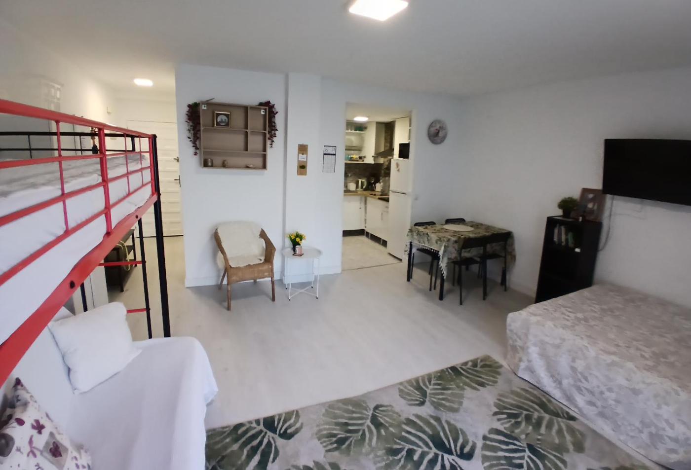 Estudio Familiar. In the fully equipped kitchen, guests will find a stovetop, a refrigerator, kitchenware and a microwave. The studio features air conditioning, a washing machine, a balcony with ancourtyard view as well as a private bathroom boasting a shower. The unit has 2 beds and 1 futon.