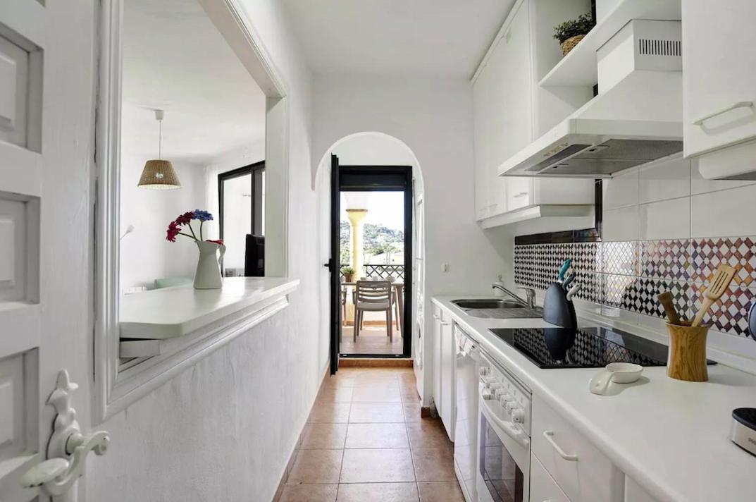 Apartamento con vistas al mar. Este apartamento incluye piscina con vistas. Este apartamento es amplio y cuenta con sala de estar, 2 dormitorios independientes y 2 baños con ducha. La cocina está completamente equipada con nevera, lavavajillas, utensilios y horno. El apartamento dispone de aire acondicionado, TV vÃa satélite, lavadora, cafetera, armario y vistas al mar. La unidad dispone de 4 camas.